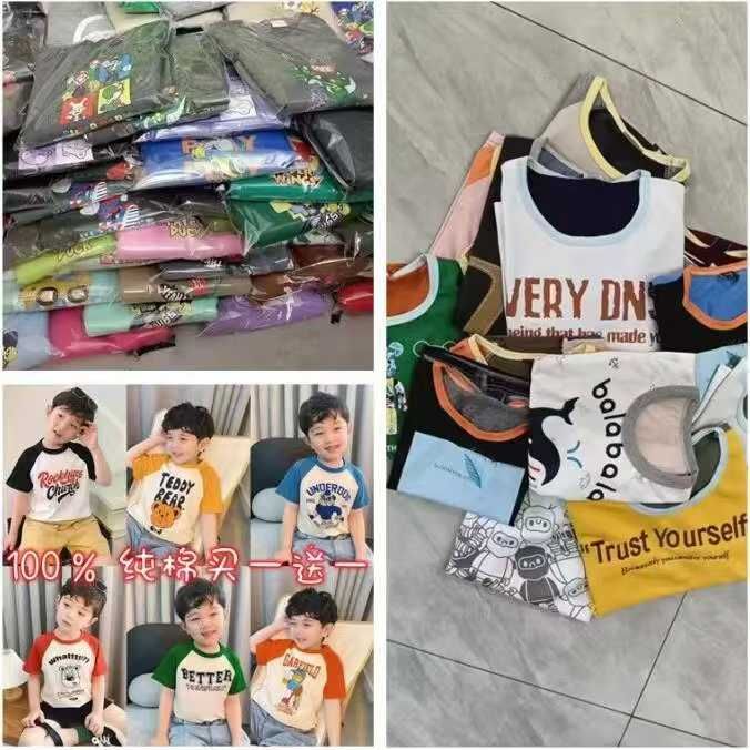 工厂亏本捡漏一批儿童插件拼色纯棉短袖T恤,码数M,L,XL,多种...