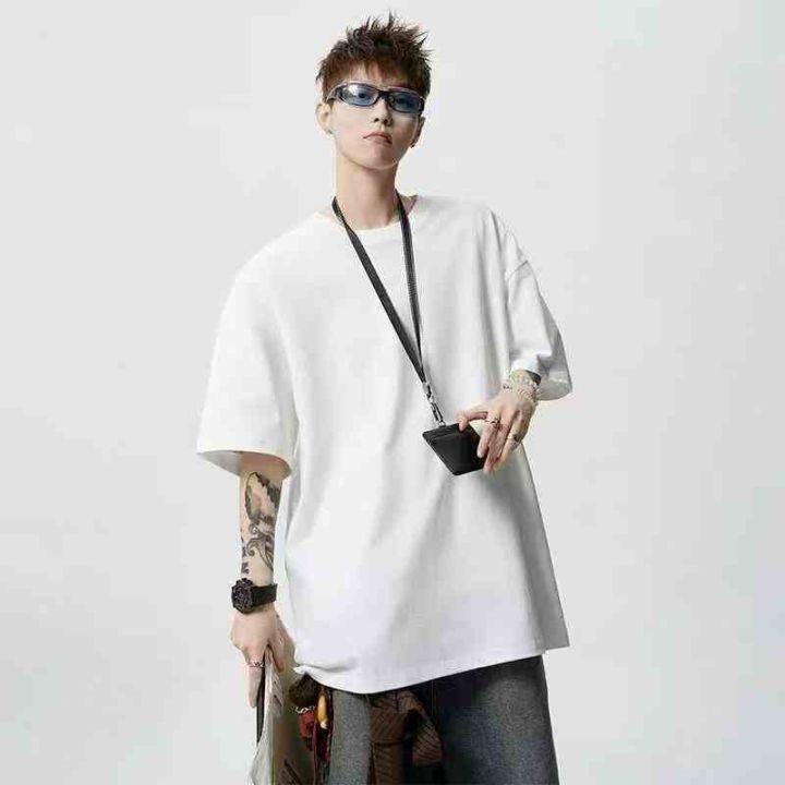 8.5清666件重磅纯棉双纱圆领T纯色男女同款短袖T恤黑白两色 220克 (颜色各...