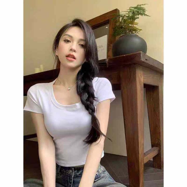 2.5清电商仓回收821件辣妹时尚露脐修身T恤,码数S-2XL。正肩版型有弹力,显...