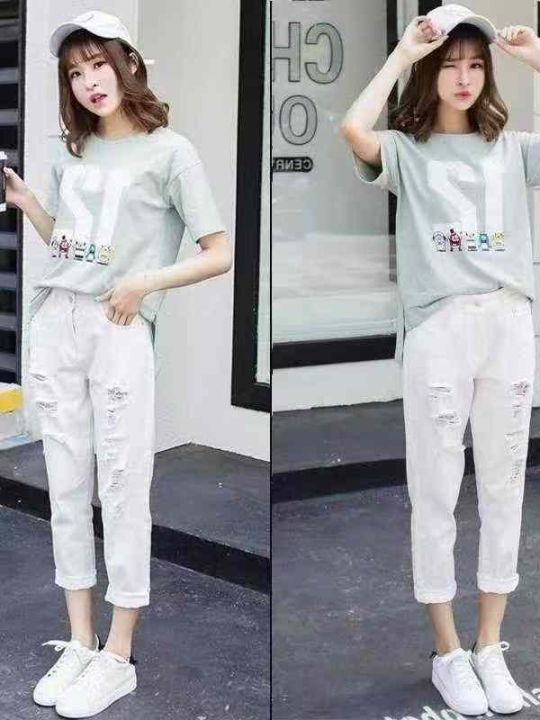 4.8清电商仓回收40件韩版女学生宽松破洞牛仔直筒哈伦裤女,码数S-XL。全部...