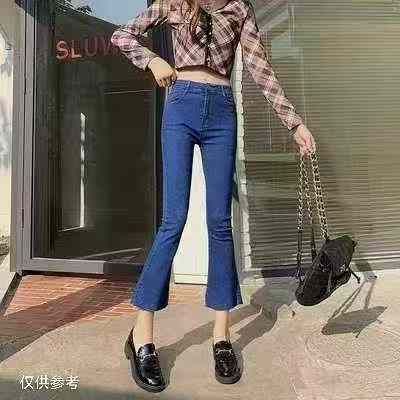 5.5清电商仓回收220件高腰简约百搭直筒深蓝色微喇叭牛仔裤九分裤,码数S-XL...