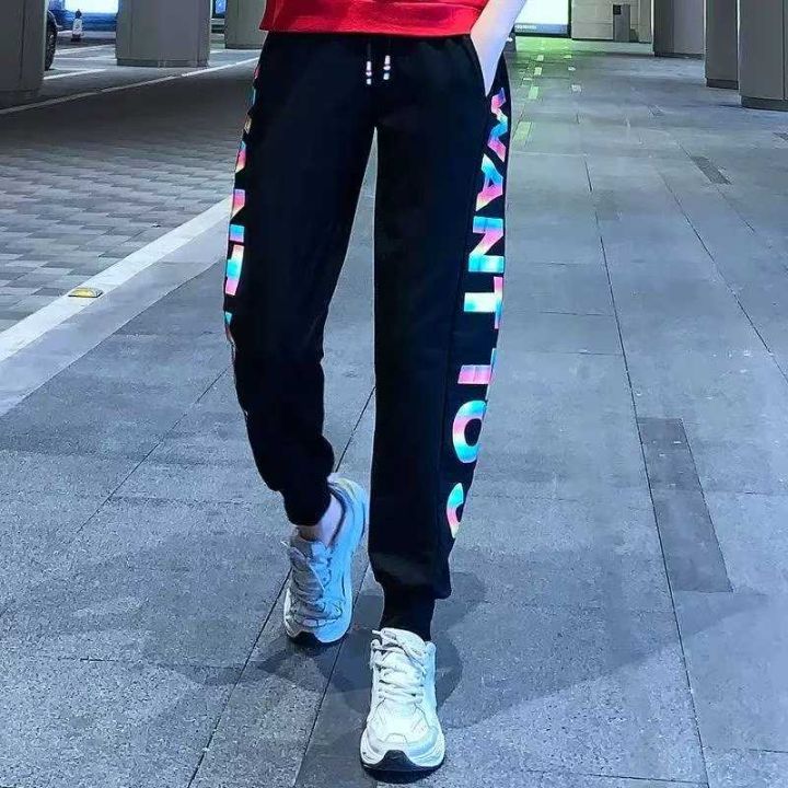 松紧腰女款春夏装薄款黑色健身运动休闲裤个性款,独立包装,码数M-XL,数量...