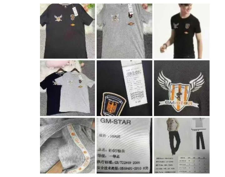 品牌男士外贸原单纯棉短袖T桖615件,单款两色,精美刺绣图案,后领包边到肩...