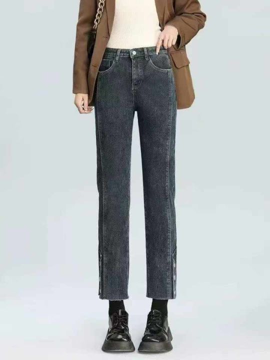 冬季新款大码女装加绒加厚高弹力洗水棉牛仔烟管裤,独立包装带腰卡,码数XL...
