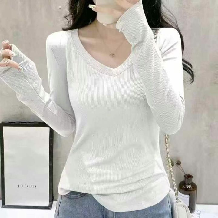 [月亮]:5.9清850件[月亮]:简约内搭外穿V领长袖T恤[月亮]:M-XXXL(高弹)...