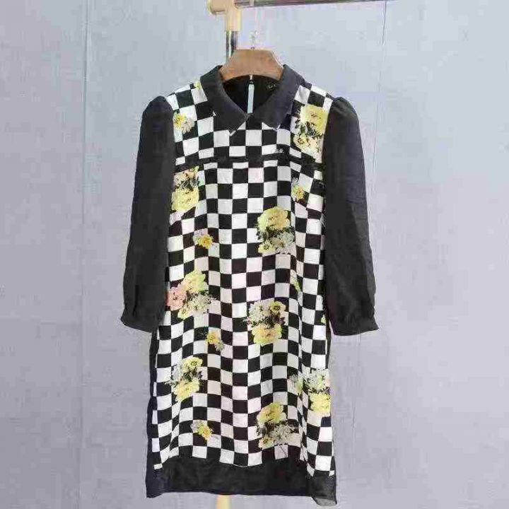 3.5元秒杀[發][發] 新款印花气质修身显廋长袖格子,白色地方轻微染色,独...