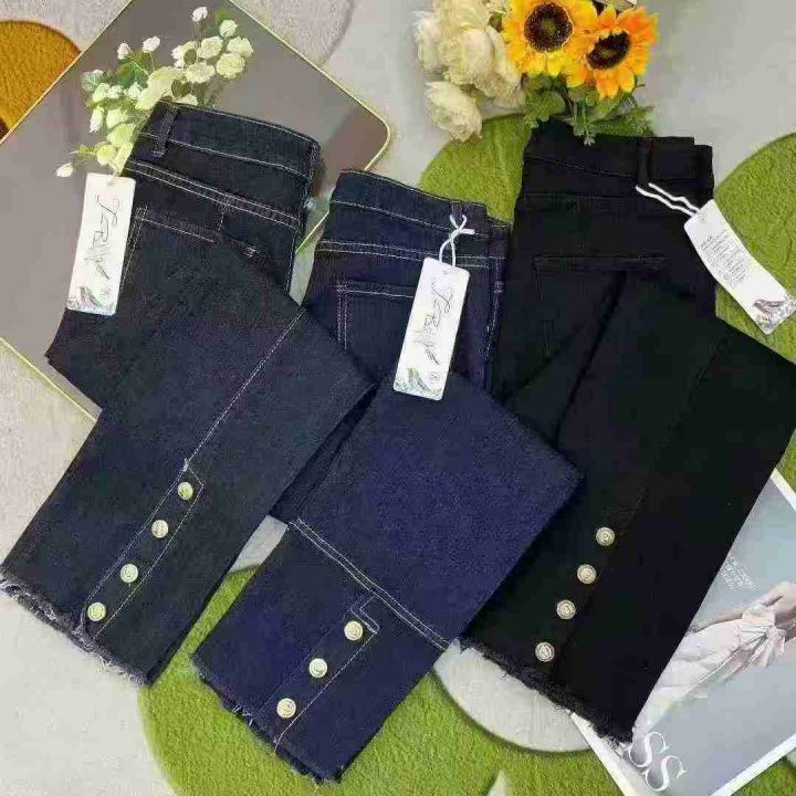 新款牛仔裤女开叉纽扣时尚弹力显瘦欧货排扣九分烟管裤潮,数量95件,码数25...