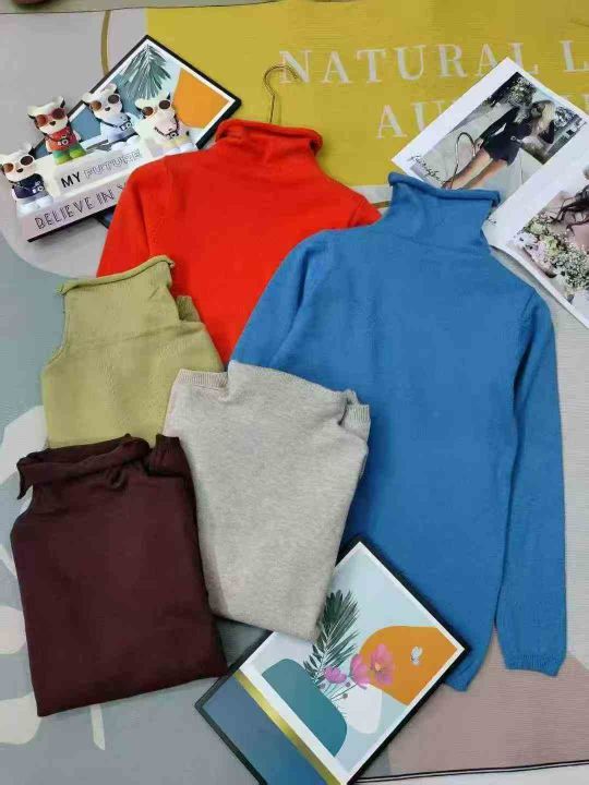 包芯纱秋冬新款高领毛衣女宽松韩版堆堆领套头针织衫打底衫,1200多件,原厂...