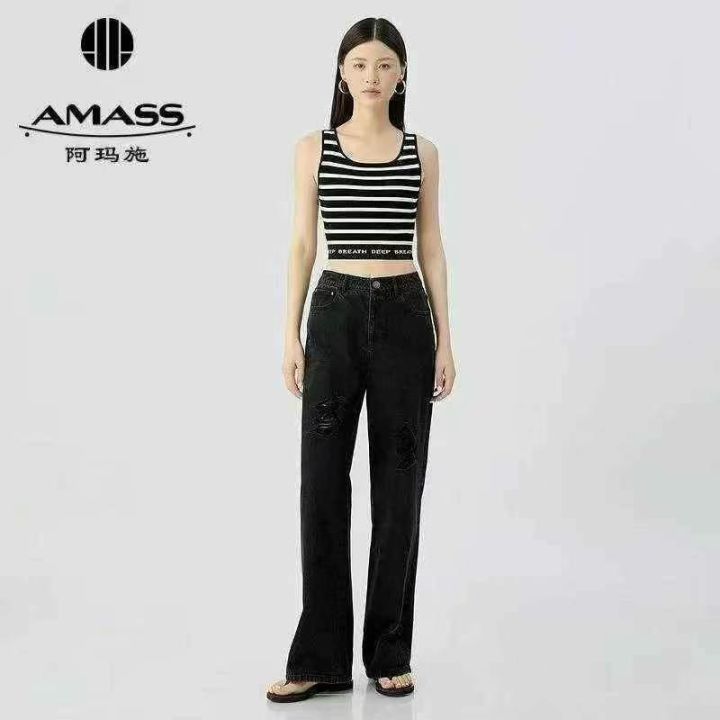 黑色窄版阔腿牛仔裤 女高腰显瘦破洞直筒宽松拖地长裤子,数量350条,尺码s-...