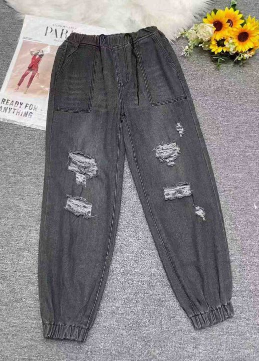 秋季新品洗水棉网红破洞个性松紧腰牛仔裤,独立包装,码数M-3XL码,248件,...