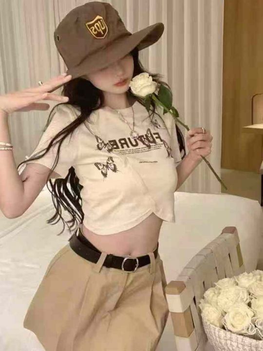 全清价5.9元不规则设计感短袖T恤女夏季新款辣妹纯欲风修身显瘦时尚上衣,独...