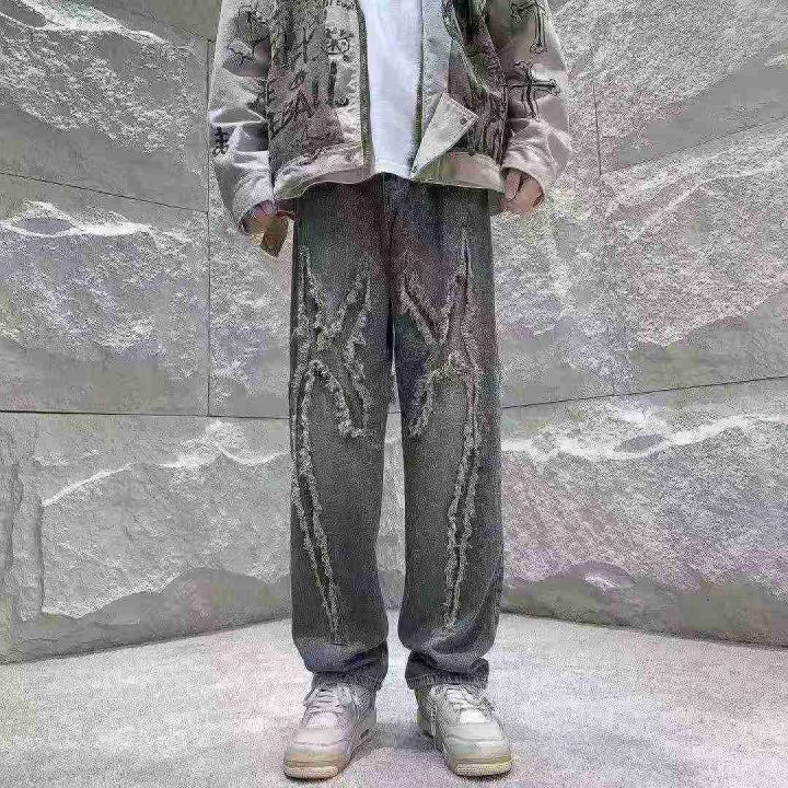 全清9.8春秋直筒毛边牛仔裤男裤脚拉链日系复古高街潮牌ins百搭工装牛仔...