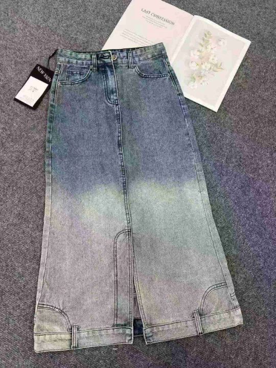 美式酷帅个性渐变色牛仔长裙不规则款360条全清14.8元,码数S到XL,单款2色...
