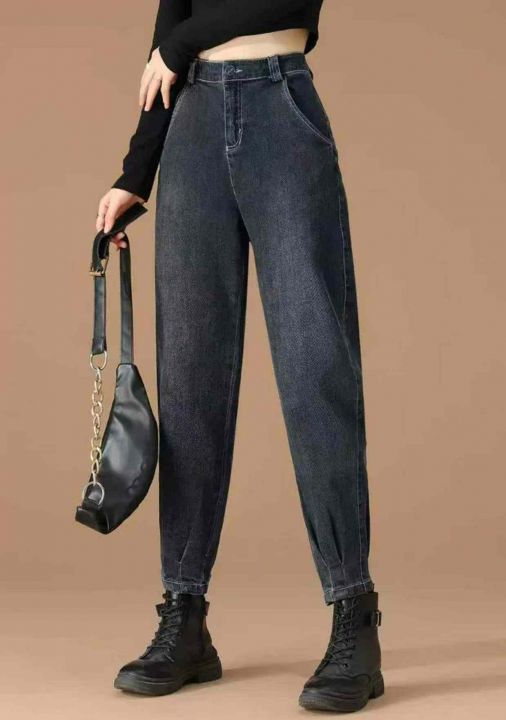 春季新款网红复古弹力洗水棉哈伦牛仔老爹裤,独立包装带腰卡,码数M、L码,...
