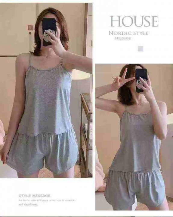 夏季性感吊带短裤女薄款睡衣两件套大码春秋家居服套装(灰色为主)码数:L-X...