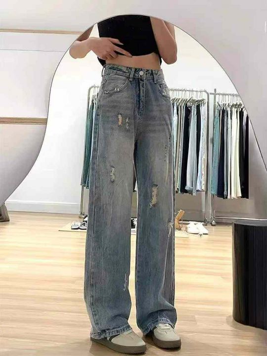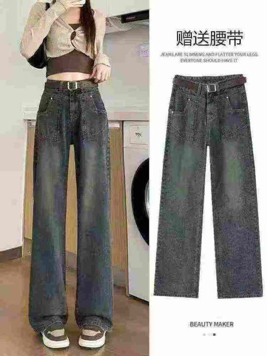 春季新款网红复古洗水棉破洞牛仔直筒阔腿裤,独立包装带腰卡带防伪扣,码数...