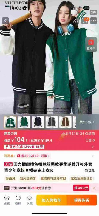 清21.8分货➕1回力品牌夹克外套撞色美式复古运动休闲棒球服,统一面料,图...