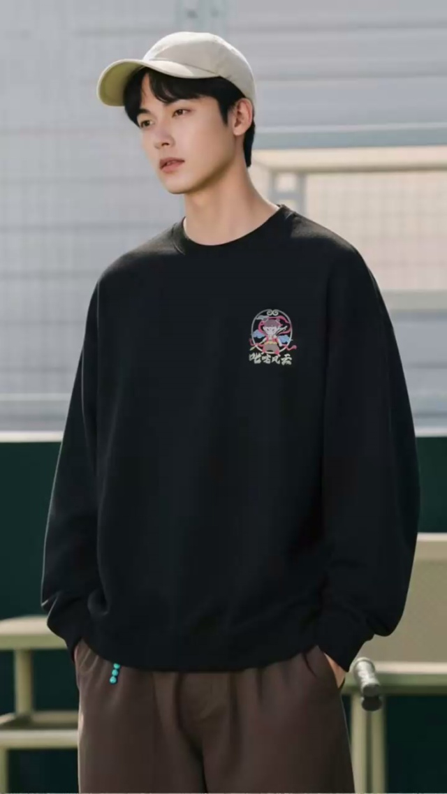 男女同款宽松慵懒风卡通提花圆领套头毛衣,独立包装,均码面料软糯舒适,18...