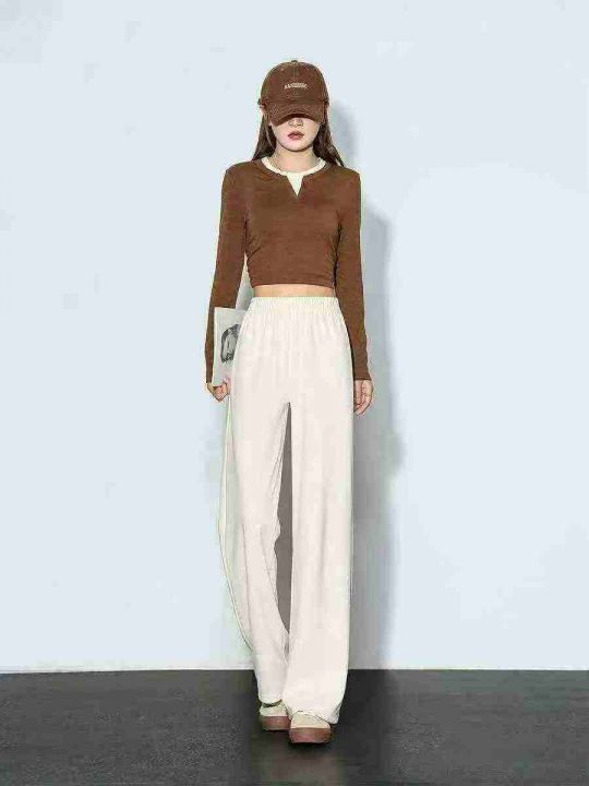 全清价7.9元金丝绒秋冬新款垂坠感高腰显瘦百搭宽松高腰休闲开叉阔腿裤,独...