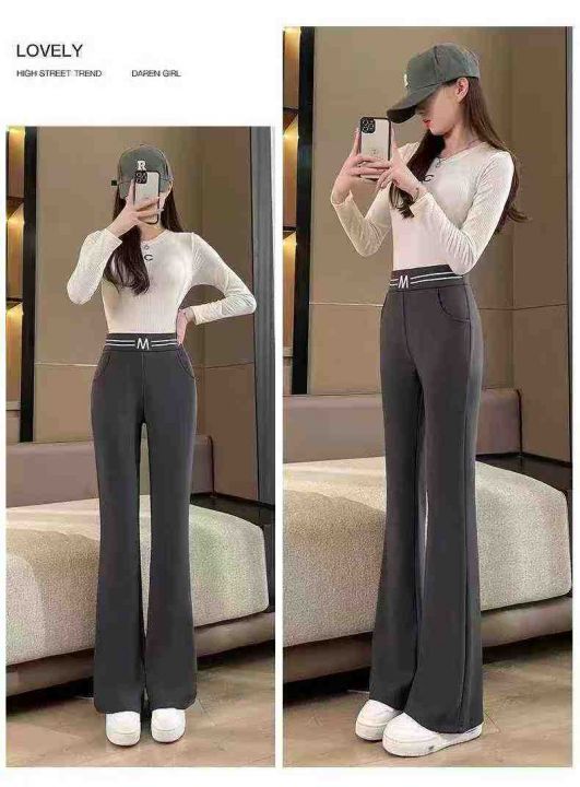天猫精选800条 天猫在售款 百搭休闲微喇叭高腰修身显瘦松紧腰阔腿裤,整款...
