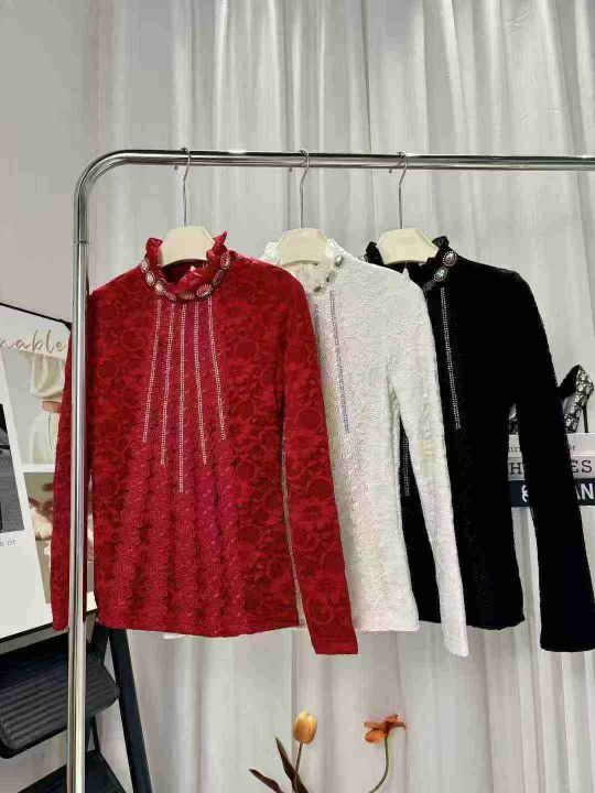 500多件高品质秋冬高领烫钻蕾丝加绒打底衫内搭长袖保暖上衣修身遮肚套头小...