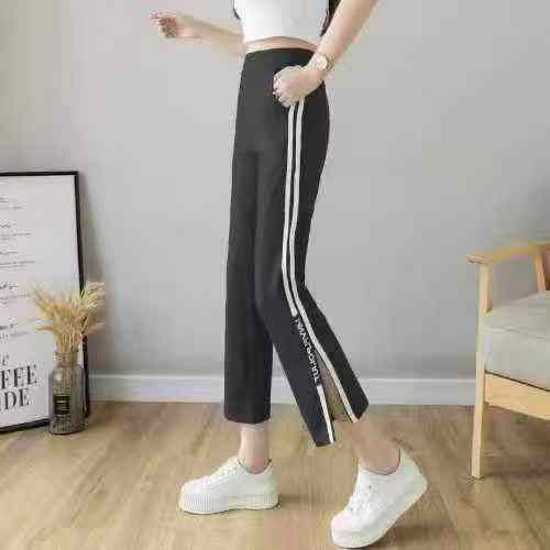 4.5清电商仓回收196条高品质刺绣百搭竖条开叉小个子微喇长裤,码数L-3XL。...