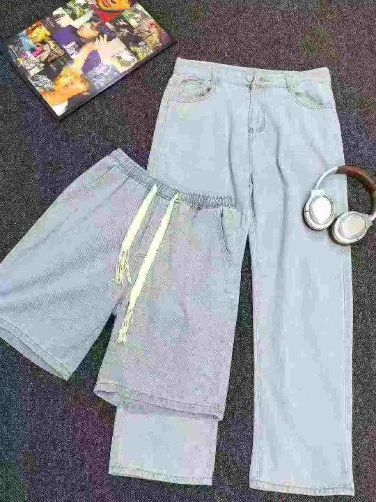 2025水洗冰蓝色磨白猫须直筒微喇牛仔裤男复古百搭宽松裤子情侣,独立包装,...