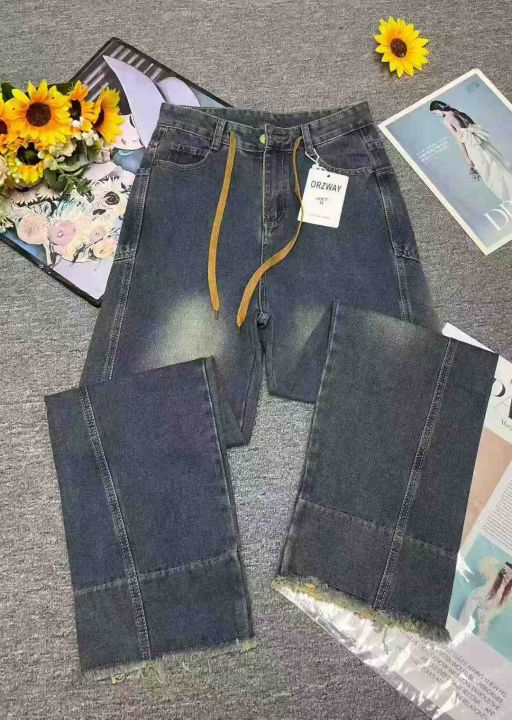 秋季新品设计款洗水棉网红爆款直筒阔腿遮肉显瘦抽绳牛仔裤,独立包装带吊牌...