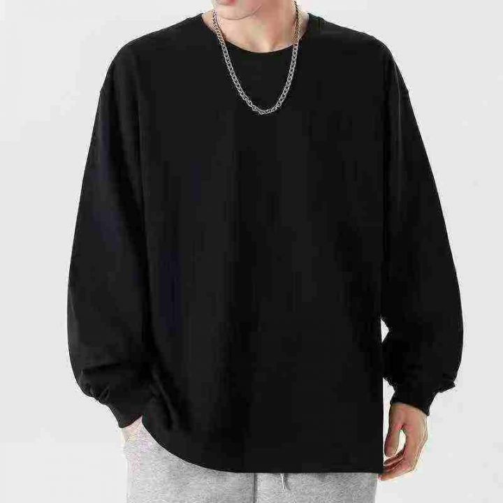 ☕️纯棉220克纯色男士长袖t恤新款春秋潮流ins宽松休闲美式纯色打底衫2800...