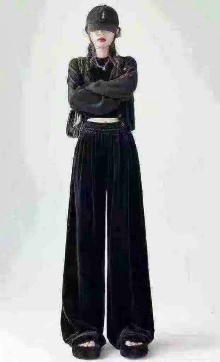 全清价7.9元金丝绒秋冬新款垂坠感高腰显瘦百搭宽松高腰休闲开叉阔腿裤,独...