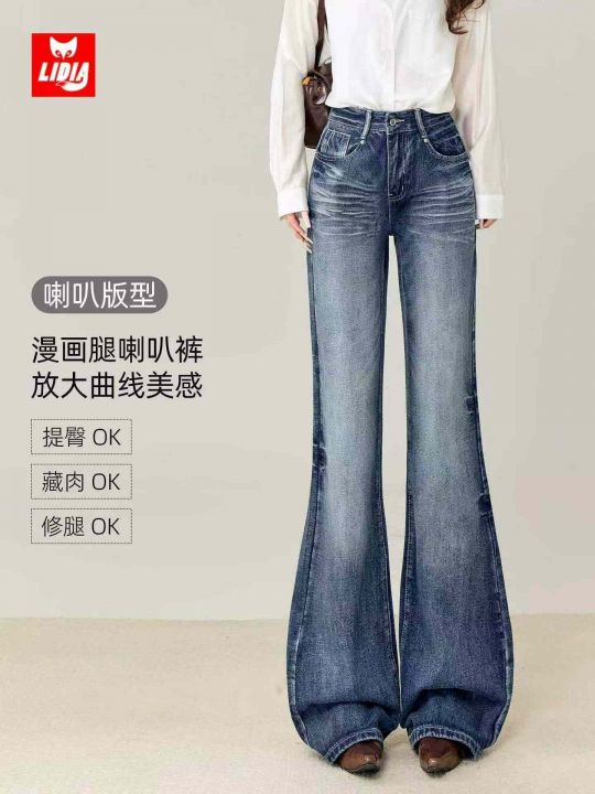 春季新款品牌外贸原单美式复古宽松弹力洗水棉微喇叭牛仔长裤,独立包装,码...