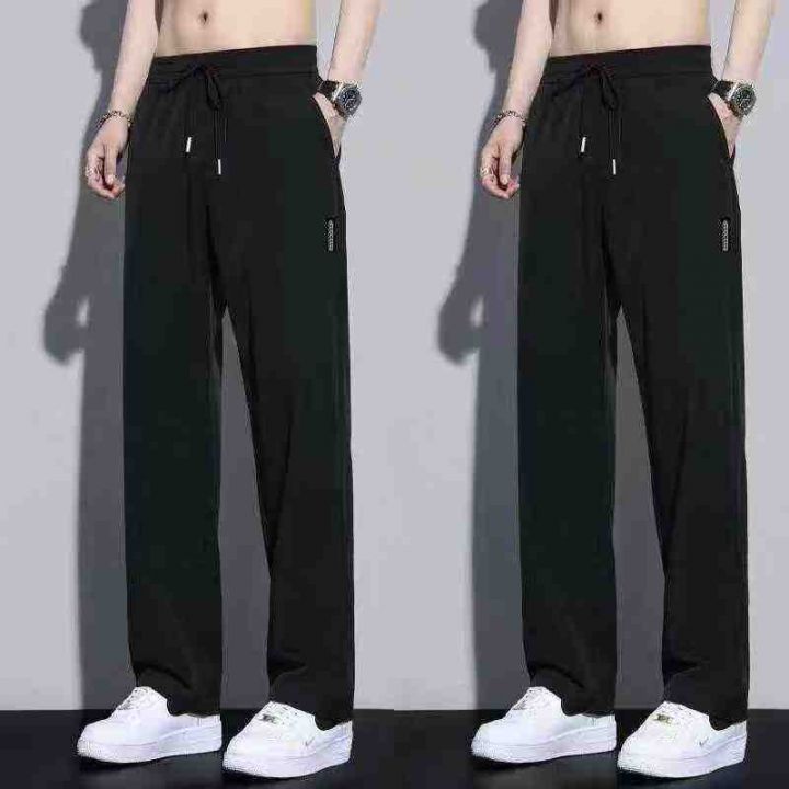 直筒长裤新款秋夏季薄款冰丝裤子男士大码休闲裤透气弹力运动裤男,整款2色...