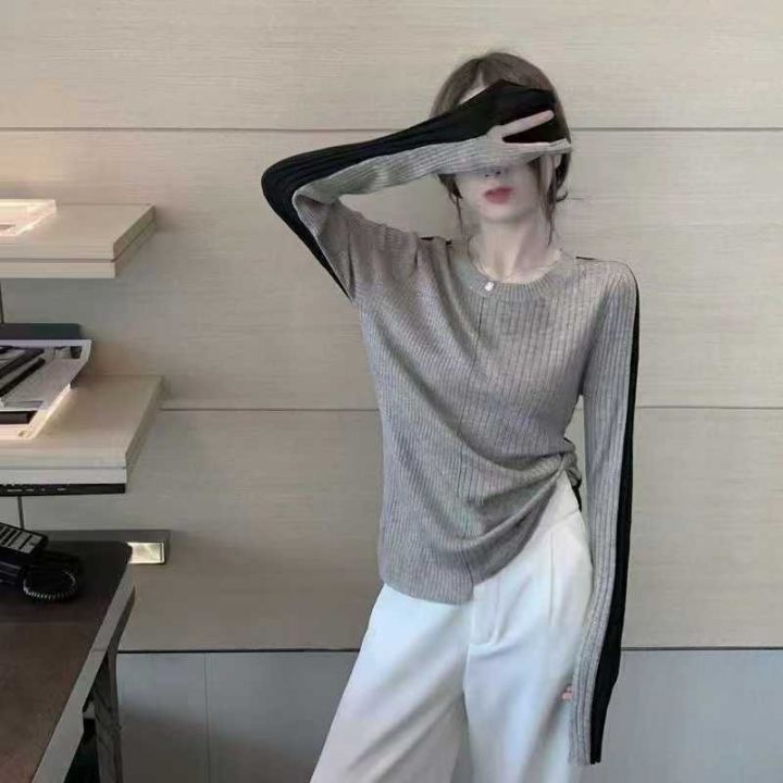 秋冬新款毛衣宽松慵懒女针织打底衫长袖百搭洋气时尚圆领针织上衣,独立包装...
