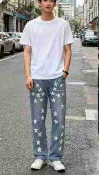 秋季新品洗水棉高级感五角星潮牌直筒男士牛仔裤,独立包装带吊牌,码数32--...