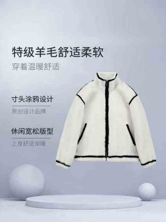 50件秋冬男女同款立领宽松冬季夹克羊羔毛皮毛一体羊羔绒外套!尺码S-L,大版...