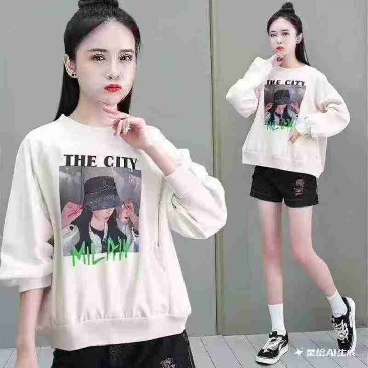 秋季新款短款宽松撞色拼接设计款印花纯棉卫衣,独立包装带吊牌,码数ML码,...
