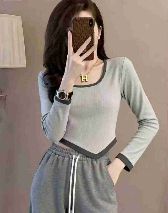 秋冬新款撞色高腰设计不规则纯欲风短款针织套头毛衣,独立包装,均码面料柔...