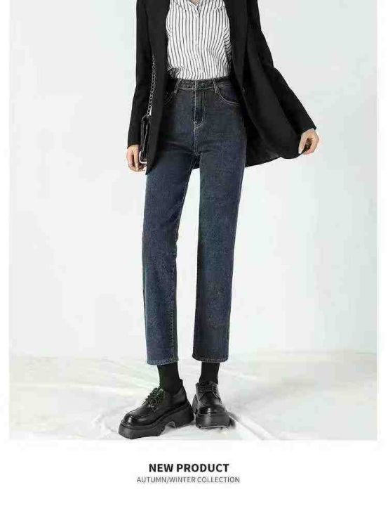 秋冬新款高品质网红爆款洗水棉直筒阔腿牛仔长裤,独立包装,单款2色,码数S...