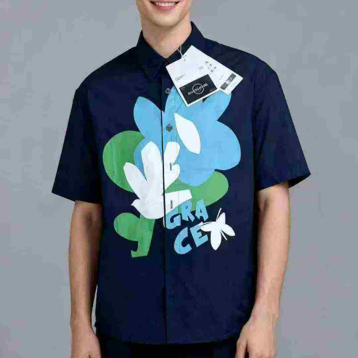 美式复古小众潮牌印花短袖衬衫男士时髦慵懒休闲度假风衬衣,品牌高品质设...