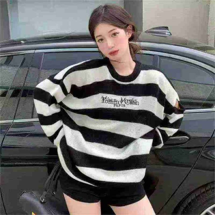 上新全清:12.8一件韩版条纹字母刺绣露肩男女同款针织上衣,[爱心]110件左...