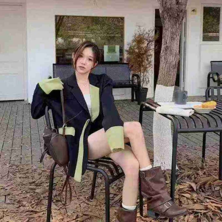 上新全清:16.8一件韩系飘带黑色撞色宽松西装外套,[爱心]165件左右,码数S...