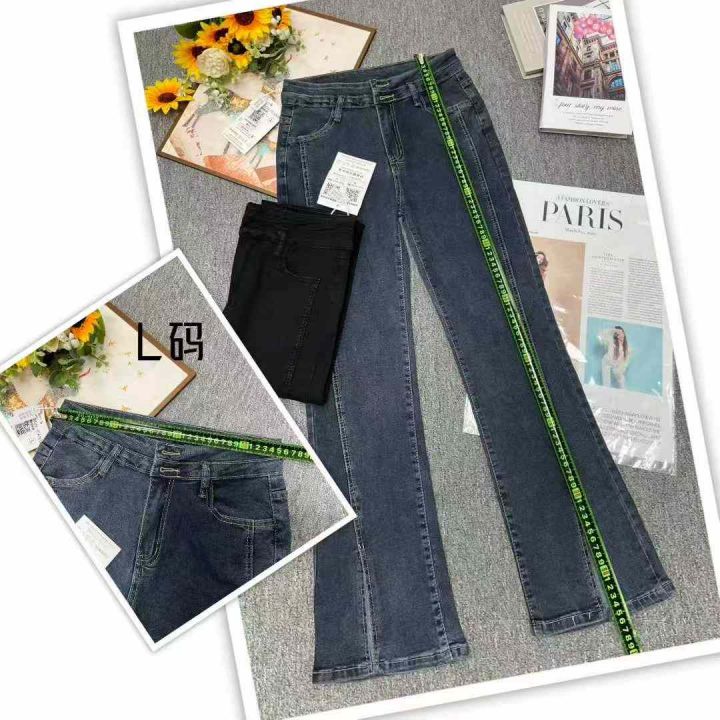 秋季新款高弹力微胖mm洗水棉网红爆款开叉牛仔喇叭裤,独立包装带吊牌,码数...