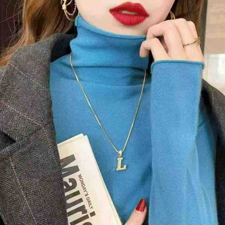秋冬新款高品质网红弹力修身显瘦卷边高领温柔风包芯纱打底外穿套头毛衣,单...