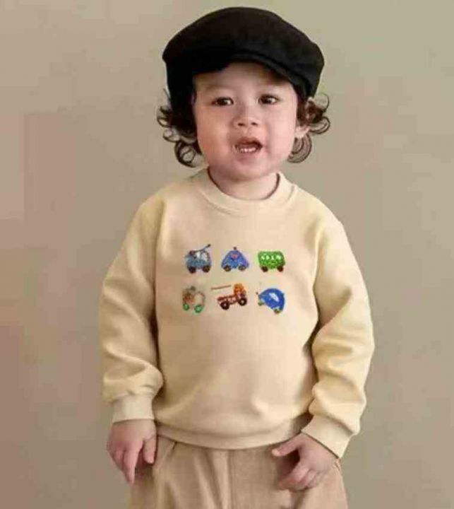 3.9清天猫仓回收460件纯棉小汽车刺绣圆领童装加绒卫衣,码数90-130。面料柔...