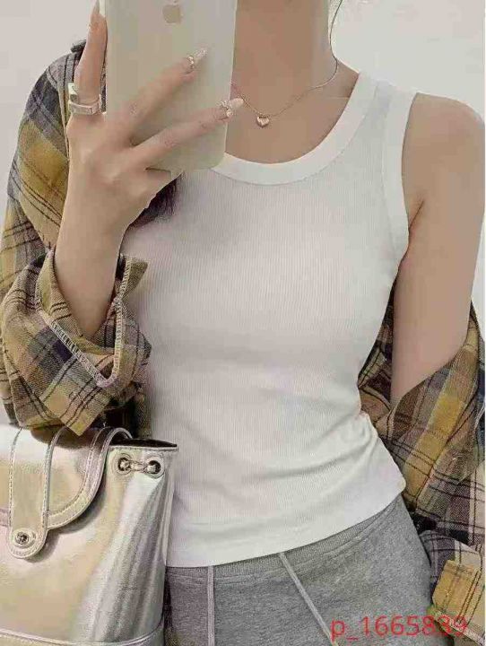 清2.8分货➕0.5辣妹修身工字背心夏季防走光螺纹冰丝宽肩带上衣显瘦外穿打底...
