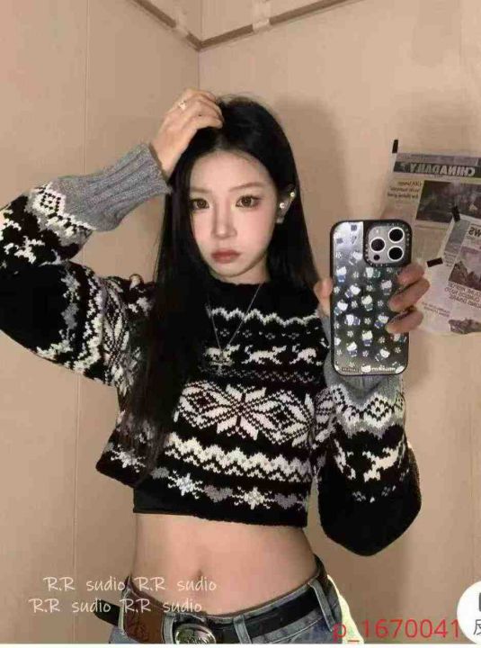 费尔岛毛衣慵懒辣妹风针织衫高级感纯欲上衣,独立包装,主色红色,60件,清...