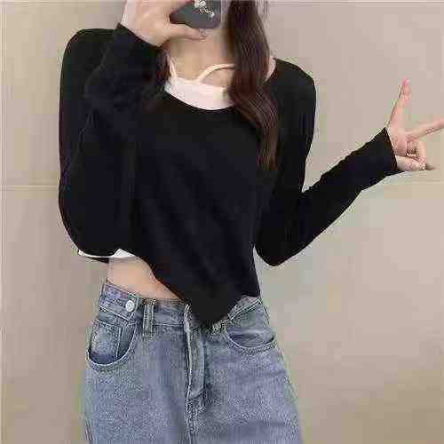 棉质假两件长袖66件7.5,面料柔软舒适高弹力,撞色拼接,下摆不规则,均码...