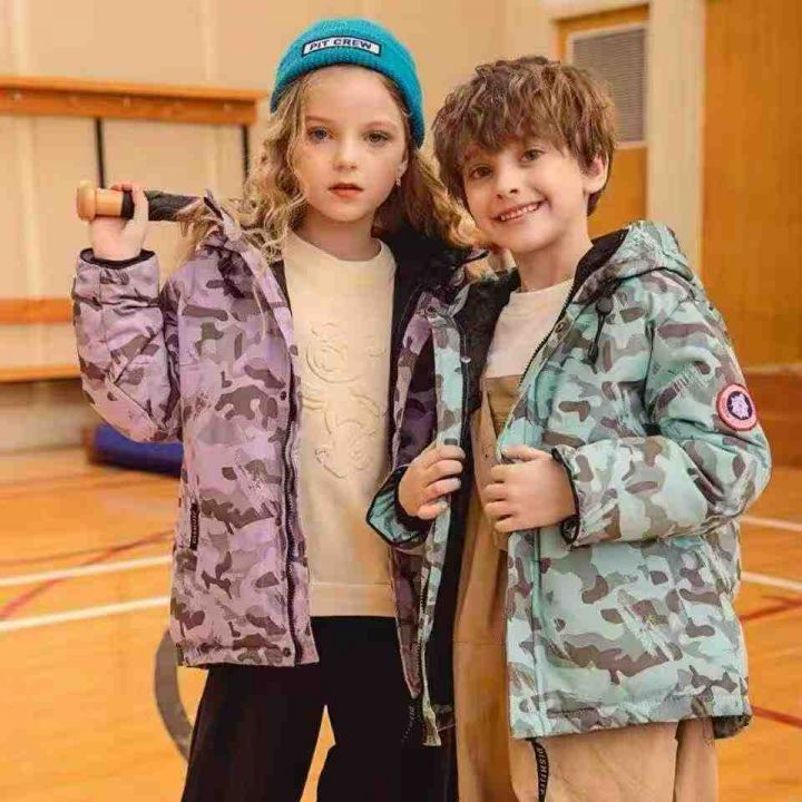 新款儿童羽绒服派克服迷彩中长款冬季加厚保暖男女童潮外套,独立包装,码数...
