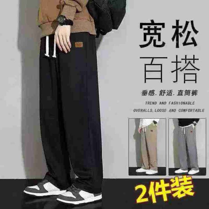 华夫格垂感直筒阔腿裤宽松卫裤男春秋季抽绳运动裤子男款休闲长裤,整款3色...