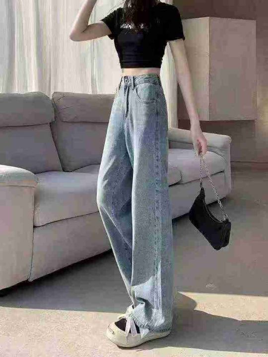 高腰垂感阔腿牛仔裤,辣妹牛仔阔腿裤新款复古显瘦宽松直筒牛仔拖地裤,正规...